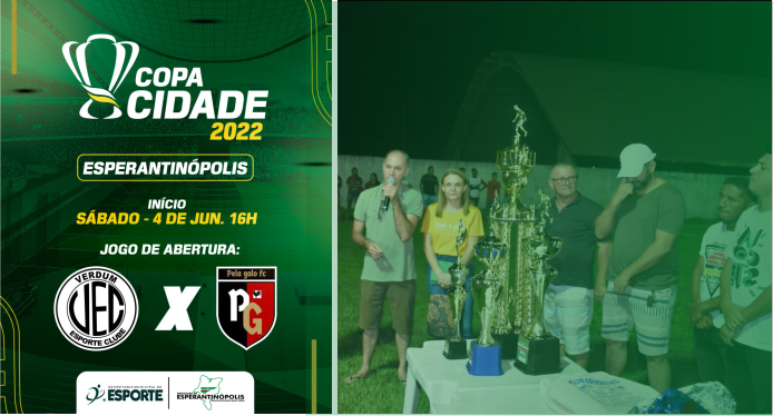 Realizado pela Prefeitura de Esperantinópolis por meio da Secretaria Municipal de Esporte e Lazer, a Copa Cidade terá encerramento no dia 27 de junho, data do aniversário da cidade, para todas as categorias. As inscrições das equipes foram liberadas sem custo financeiro e o ingresso será gratuito para os torcedores.